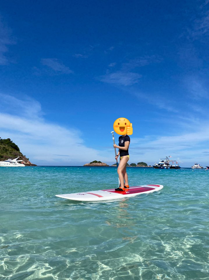 패들보트 또한 리조트내에서 렌트할 수 있어서 리조트 앞 이렇게 맑은 바다 위에서 즐길 수 있습니다.