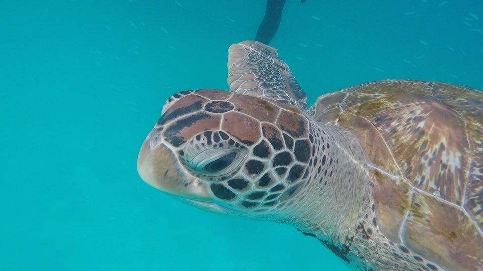 위의 사진은 실제로 제가 르당 바다에서 스노쿨링을 하면서 찍은 거북이 사진 입니다. 리조트을 예약하면 기본적으로 바다거북이를 볼 수 있는 스노쿨링이 포함되어 있습니다. 하지만 리조트 입구에서 따로 여행사에서 유료로 제공하는 스노쿨링 코스가 있는데 꼭 추가적으로 유료 스노쿨링 코스를 진행하시는 걸 추천 드립니다. 리조트에서 제공하는 스노쿨링은 리조트에서 크게 멀리 떨어지지 않은 바닷가만 나가기 때문에 바다거북이를 볼 수 있는 확률이 높지는 않습니다. 다만, 유료로 제공하는 스노쿨링 같은 경우 본인들이 알고 있는 바다거북이 스팟을 다 돌아다니며, 사실상 바다거북이를 볼 때 까지 스노쿨링을 한다라고 생각하시면 됩니다. 첫 스팟을 가자마자 바다거북이를 봤으니 정말 돈이 아깝지 않은 여행 상품이였습니다.