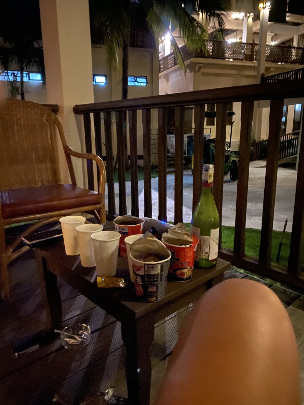 물놀이 코스가 많기 때문에 식사 외에 추가적인 음식을 섭취하지 않는다면, 쓰러질지도 모릅니다. 어쩔 수 없이, 리조트의 평화로운 분위기 속에서 라면과 와인을 즐겼습니다. 숙소 예약할 때 이렇게 밖에 테라스가 있는 방인지 꼭 확인해보시는 것도 하나의 좋은 팁일 듯 합니다.