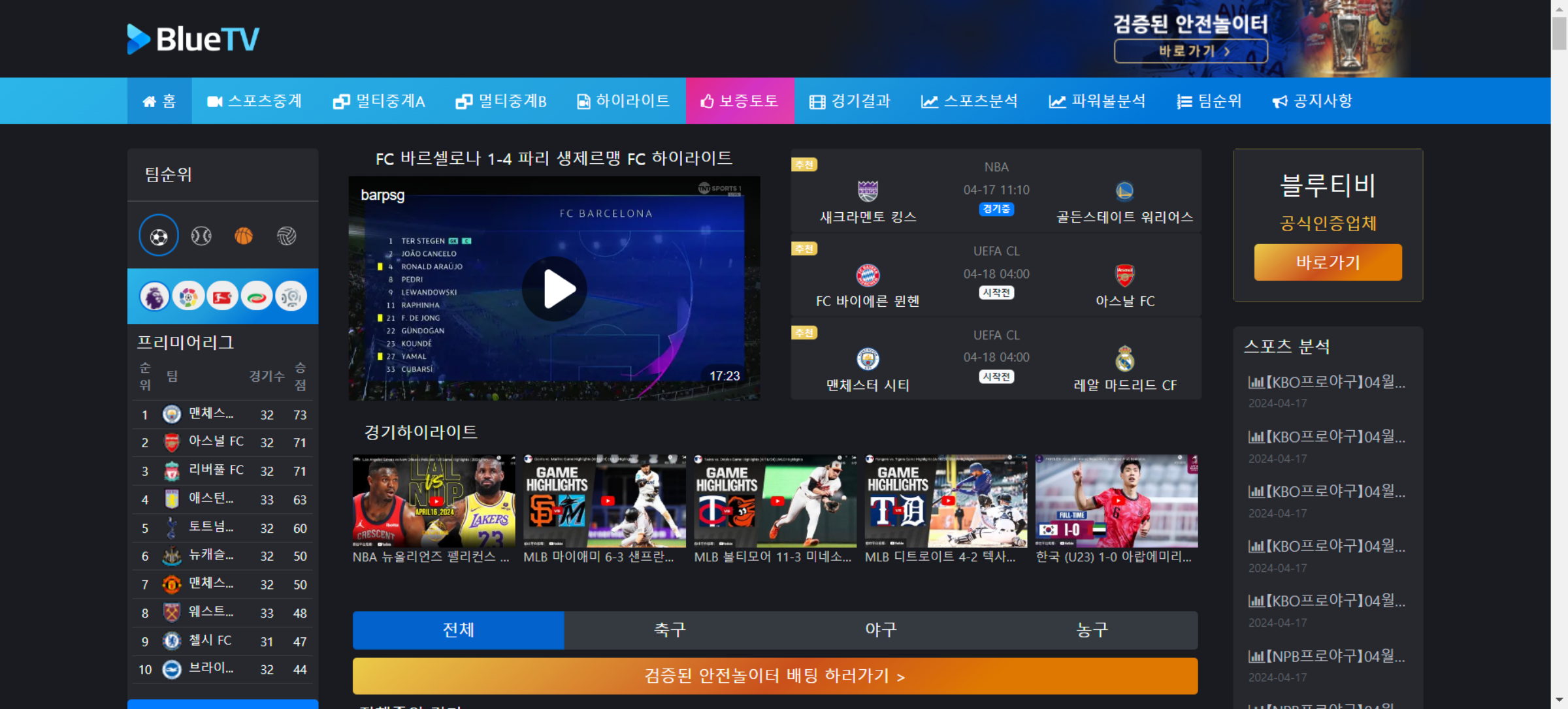 축구외에 야구, 농구 등 다양한 종목 중계를 다루는 사이트 입니다.